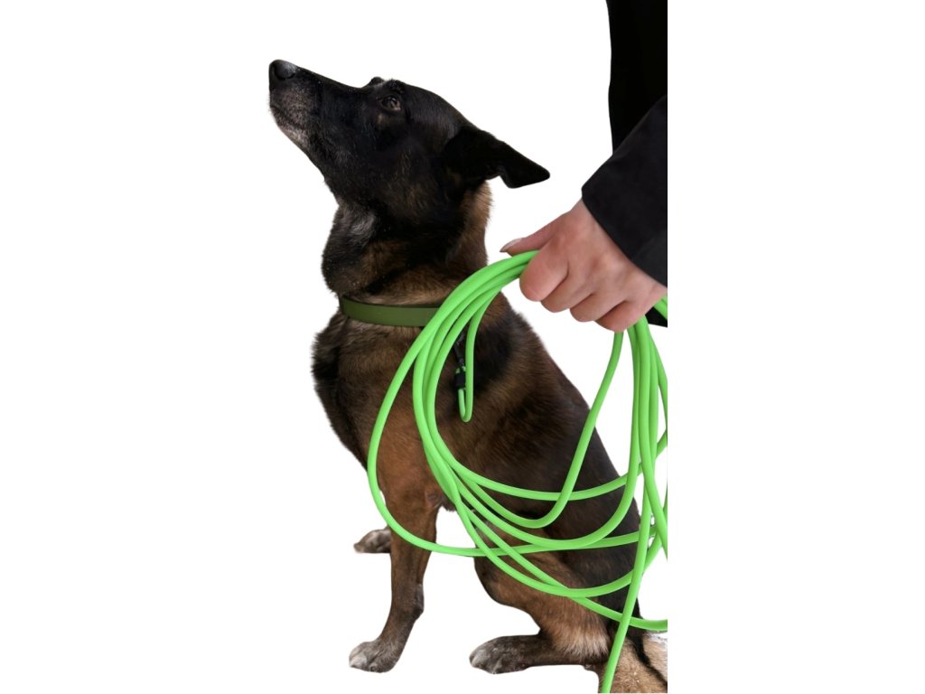 A long leash made of round biothane.